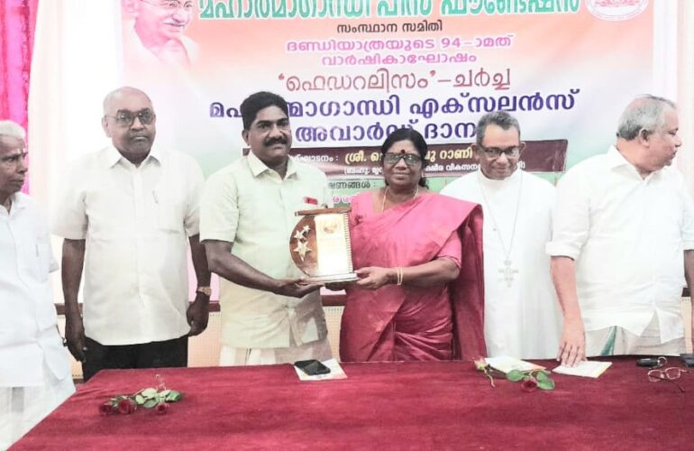 12 Mar, 2024 Awards & Recognition, Kollam മഹാത്മാഗാന്ധി എക്സലൻസ് അവാർഡ് – Sri. ജേക്കബ് എസ് മുണ്ടപ്പുളം കേരള സംസ്ഥാന മന്ത്രി ജെ ചിഞ്ചു റാണിയിൽ നിന്നും ഏറ്റുവാങ്ങുന്നു
